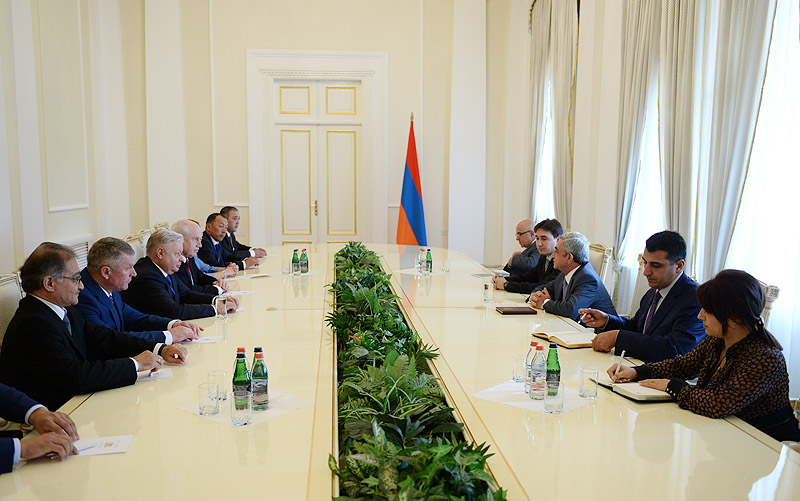 Президент Серж Саргсян сегодня принял делегацию участников проводящегося в Ереване 16-го заседания Совета руководителей миграционных органов государств – участников СНГ во главе с председателем Совета, руководителем Федеральной миграционной службы РФ Константином Ромодановским.
