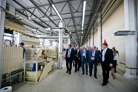 Гостей церемонии открытия пригласили на экскурсию по территории предприятия, где им были продемонстрированы образцы продукции нового завода, показана работа цеха по производству пазогребневых плит. Это гипсовая плита для возведения межкомнатных и межквартирных перегородок, с пазами и гребнями по опорной и стыковочной поверхностям. Полученная перегородка не нуждается в оштукатуривании.
