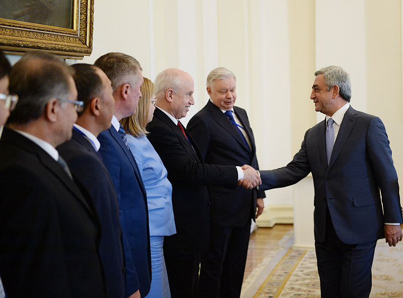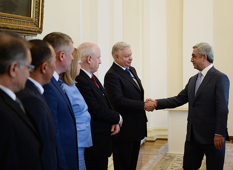 Президент Серж Саргсян сегодня принял делегацию участников проводящегося в Ереване 16-го заседания Совета руководителей миграционных органов государств – участников СНГ во главе с председателем Совета, руководителем Федеральной миграционной службы РФ Константином Ромодановским.