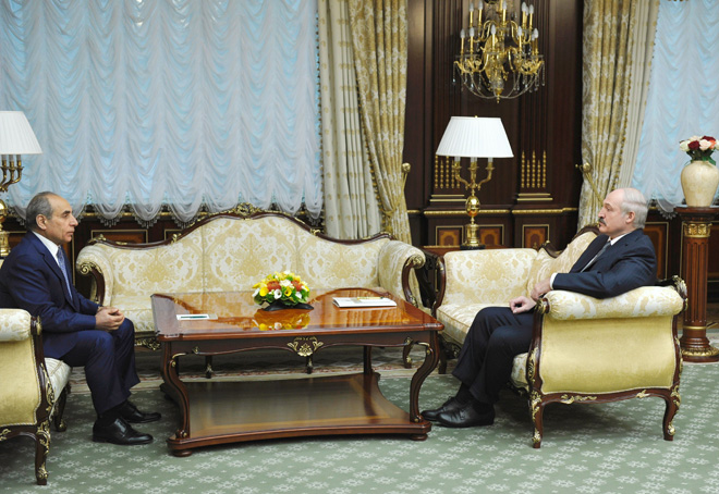 Ягуб Эюбов передал главе белорусского государства приветствие от Президента Азербайджана Ильхама Алиева и высказал слова благодарности за отношение и оказываемую поддержку, "не только экономическую, торговую, но и политическую, братскую, дружескую и соседскую".