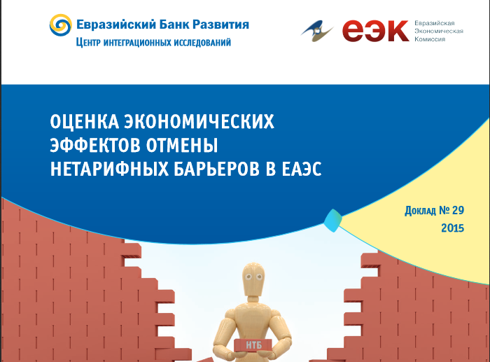 Санкт-Петербург, 17 марта 2015 года. — Нетарифные барьеры (НТБ) существенно обременяют взаимные потоки товаров и услуг между странами Евразийского экономического союза (ЕАЭС). Таков основной вывод доклада Центра интеграционных исследований Евразийского банка развития (ЦИИ ЕАБР) «Оценка экономических эффектов отмены нетарифных барьеров в ЕАЭС», в котором впервые даются развернутые оценки влияния НТБ на взаимную торговлю и соответствующие рекомендации по их устранению. Доклад подготовлен на основе опроса 530 российских, казахстанских и белорусских предприятий-экспортеров.