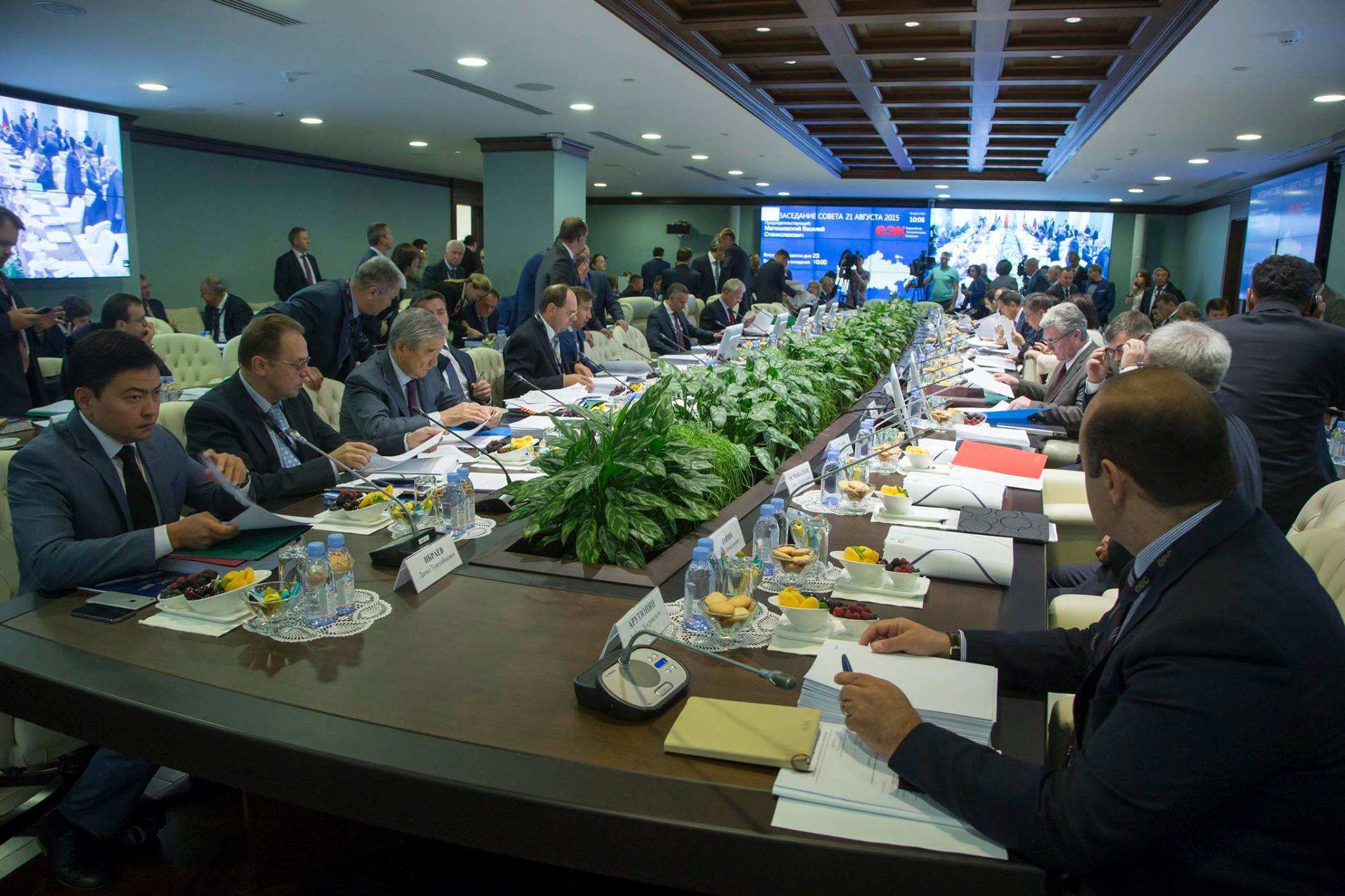 21 августа в Москве состоялось очередное заседание Совета Евразийской экономической комиссии. В мероприятии приняли участие Члены Совета ЕЭК: Вице-Премьер-министр, Министр международной экономической интеграции и реформ Республики Армения Ваче Габриелян, первый заместитель Премьер-министра Республики Беларусь Василий Матюшевский, первый заместитель Премьер-министра Республики Казахстан Бакытжан Сагинтаев, Вице-Премьер-министр Кыргызской Республики Валерий Диль, первый заместитель Председателя Правительства Российской Федерации Игорь Шувалов, Члены Коллегии (Министры) Евразийской экономической комиссии.