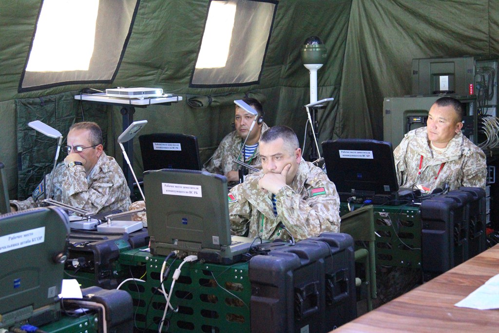 Сегодня многонациональный коллектив Командования и штаба КСОР ОДКБ на развернутом автоматизированном пункте управления осуществляли планирование и подготовку совместной операции по локализации вооруженного конфликта с целью сохранения суверенитета, защиты конституционного строя и восстановления территориальной целостности условного государства-члена ОДКБ.
