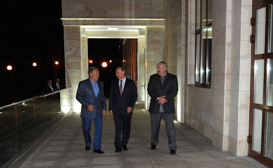 Неформальная встреча Владимира Путина с Александром Лукашенко и Нурсултаном Назарбаевым