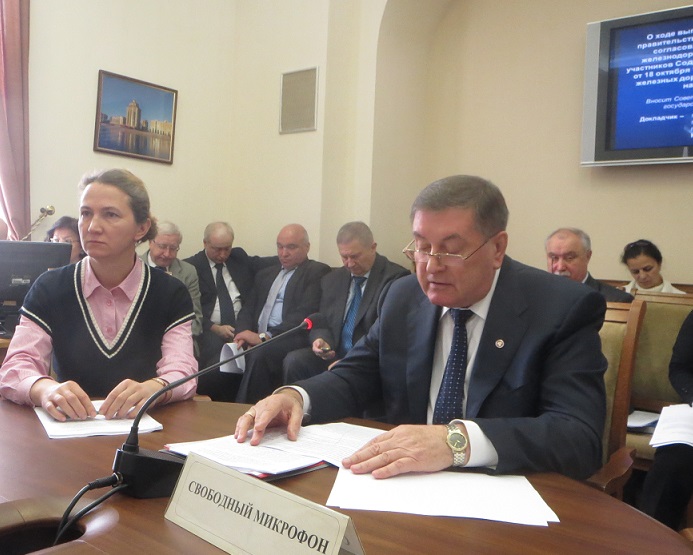Был также обсужден ход выполнения решения Совета глав правительств СНГ о Концепции установления согласованной тарифной политики на железнодорожном транспорте государств СНГ от 18 октября 1996 года и о Тарифной политике железных дорог государств Содружества на 2015 фрахтовый год.