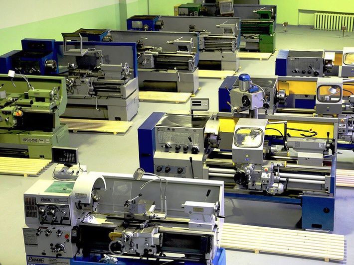В просторном отремонтированном зале размещено необходимое оборудование для практики по специализации «Станочник». Техника универсальна и отвечает всем современным требованиям. Станки имеют цифровые дисплеи и программное управление.