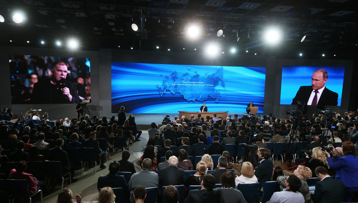 Известно, что Большая пресс-конференция президента России начнется в полдень. Прямую трансляцию будут вести телеканалы "Россия-1", "Россия 24" и "Первый канал", а также радиостанции "Маяк", "Вести ФМ" и "Радио России".
