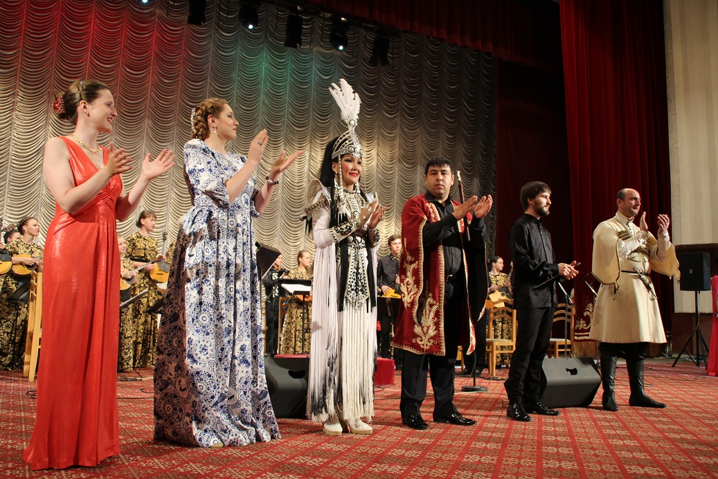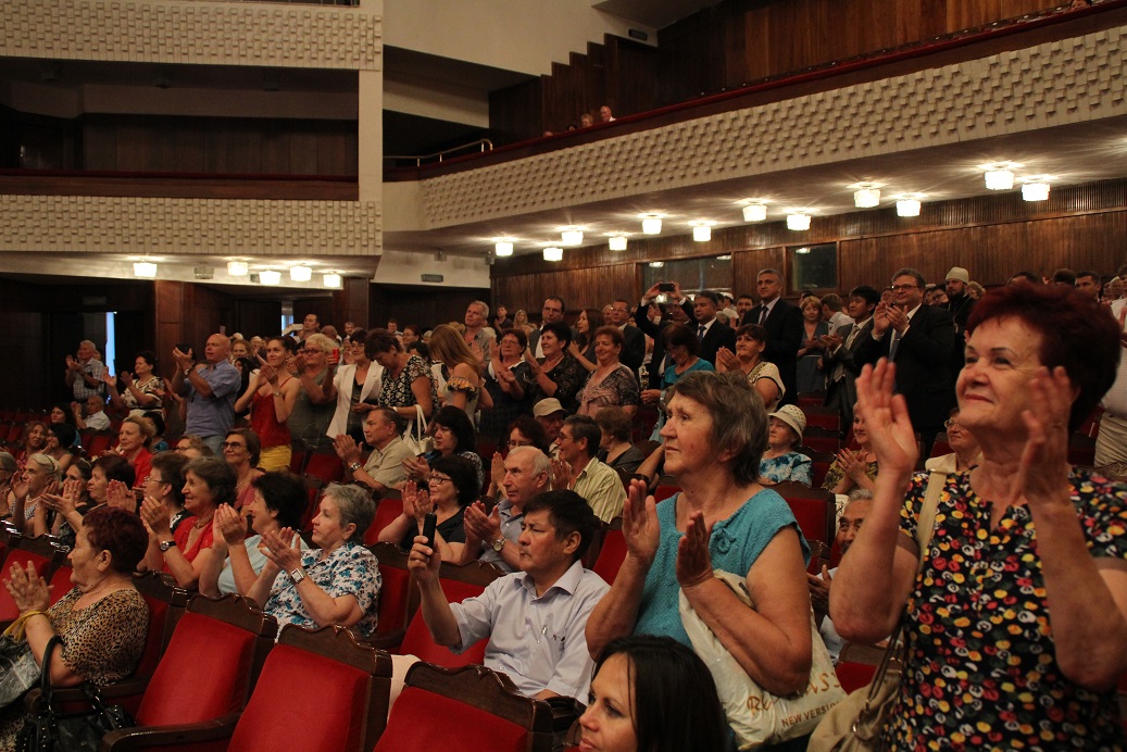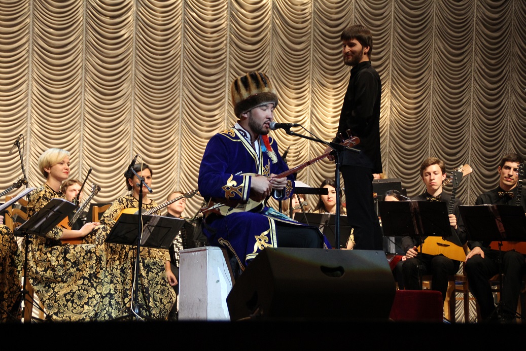 В рамках торжественной церемонии состоялся концерт оркестра национальных инструментов «Терема» с солистами и открытие выставки рисунков учащихся художественных школ «Душа России» в фойе Кыргызской национальной филармонии имени Т.Салтыганова.