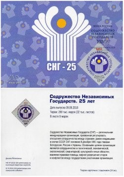 Также марки, посвященные 25-летию СНГ, выпустили в почтовый оборот Кыргызстан и Таджикистан.