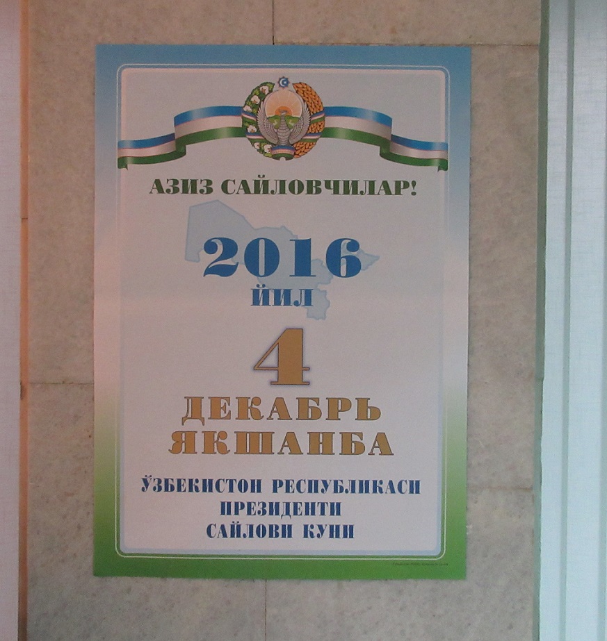 7 октября посол Узбекистана в России Бахром Ашрафханов провел брифинг, посвященный выборам Президента Республики Узбекистан, намеченным на 4 декабря 2016 года. Среди участников брифинга были сотрудники Исполнительного комитета СНГ.