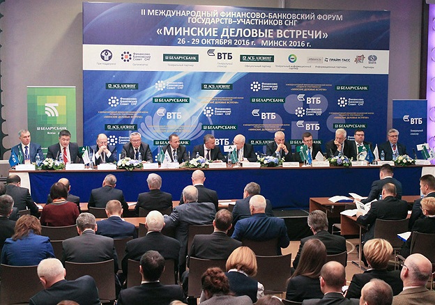 II Международный финансово-банковский форум государств - участников СНГ "Минские деловые встречи" проходит в Беларуси 26-29 октября. Участие в нем принимают представители правительственных органов, банковских и бизнес-структур государств СНГ, а также международных институтов развития, в том числе из Европы и Азии.