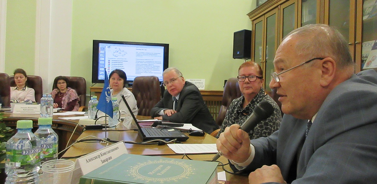 В числе выступивших в дискуссии был директор информационно-аналитического департамента Исполнительного комитета СНГ Александр Заварзин. Он рассказал собравшимся о некоторых актуальных аспектах жизни и деятельности Содружества.