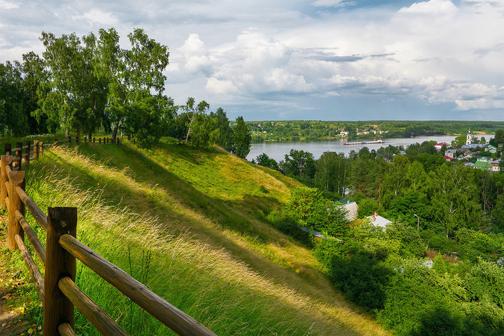 Плёс — (с 1925) входящий в состав Приволжского района на севере Ивановской области. Расположен на правобережных холмах Волги (Горьковское водохранилище), в устье речки Шохонки, в 18 км от Приволжска и в 71 км от Костромы. Наивысшая точка города — 54 м над уровнем р. Волги.
