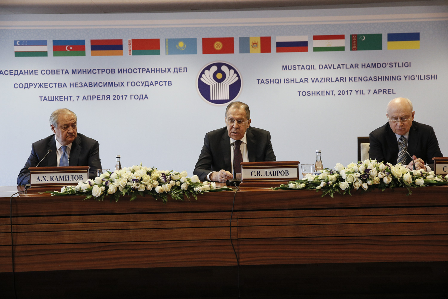 Выступление и ответы на вопросы СМИ Министра иностранных дел России С.В.Лаврова в ходе совместной пресс-конференции по итогам заседания СМИД СНГ с Исполнительным секретарем СНГ С.Н.Лебедевым и Министром иностранных дел Узбекистана А.Х.Камиловым, Ташкент, 7 апреля 2017 года