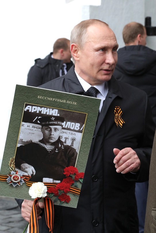 К шествию присоединился президент России Владимир Путин. Глава государства прошел от Красной площади до начала Васильевского спуска, а затем направился в Кремль через Спасскую башню. Как и в 2016 и 2015 годах, глава государства нес в руках портрет своего отца Владимира Спиридоновича Путина, который участвовал в боевых сражениях на Невском пятачке, где советские войска удерживали небольшой плацдарм, имевший стратегическое значение для будущего прорыва блокады Ленинграда.