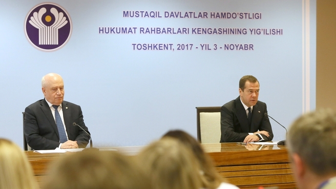 Прошла пресс-конференция Д.Медведева и С.Лебедева по завершении заседания Совета глав правительств СНГ