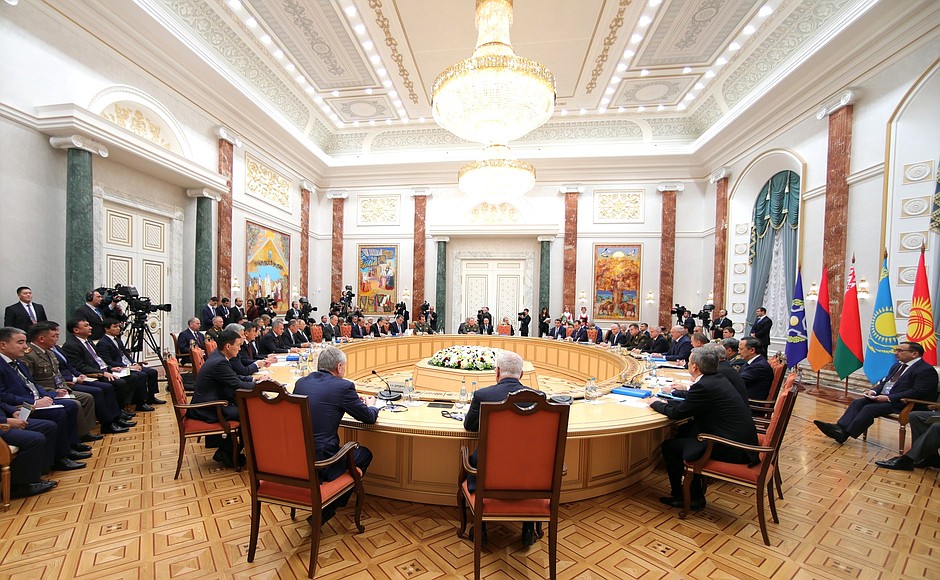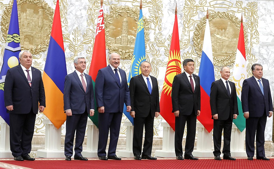 Владимир Путин, Президент Белоруссии Александр Лукашенко, Президент Армении Серж Саргсян, Президент Казахстана Нурсултан Назарбаев, Президент Киргизии Сооронбай Жээнбеков, Президент Таджикистана Эмомали Рахмон, Генеральный секретарь ОДКБ Юрий Хачатуров приняли участие в заседании Совета коллективной безопасности ОДКБ.