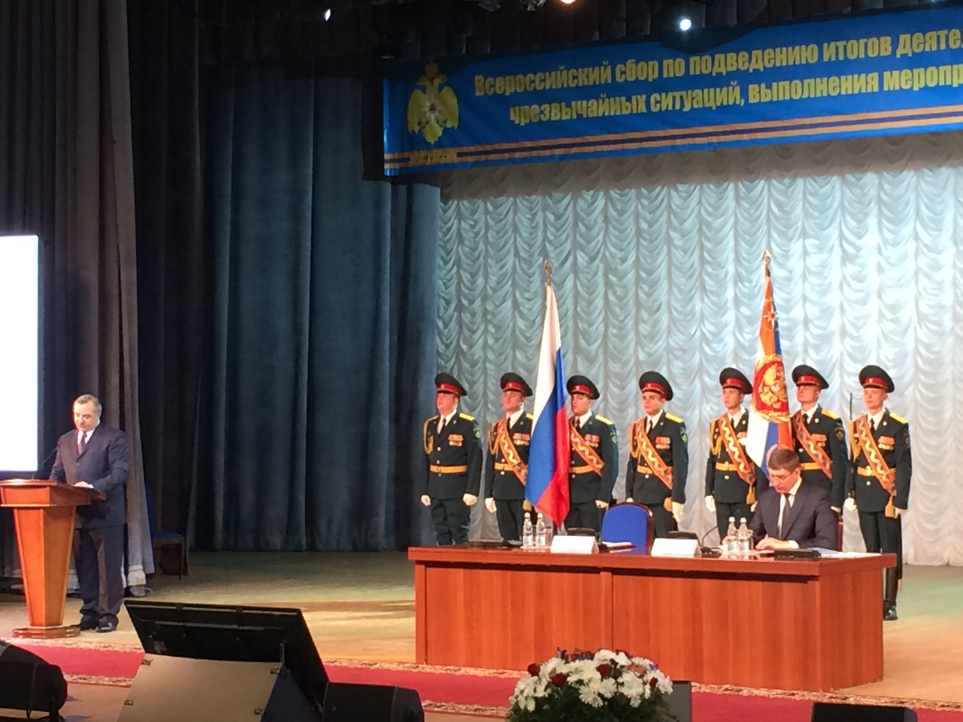 7 февраля МЧС России провело в подмосковном Красногорске традиционный Всероссийский сбор по подведению итогов деятельности единой государственной системы предупреждения и ликвидации чрезвычайных ситуаций, выполнения мероприятий гражданской обороны в 2017 году и постановке задач на 2018 год. В сборе приняли участие представители Исполнительного комитета СНГ.