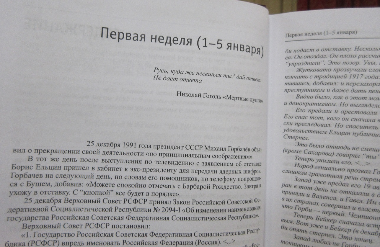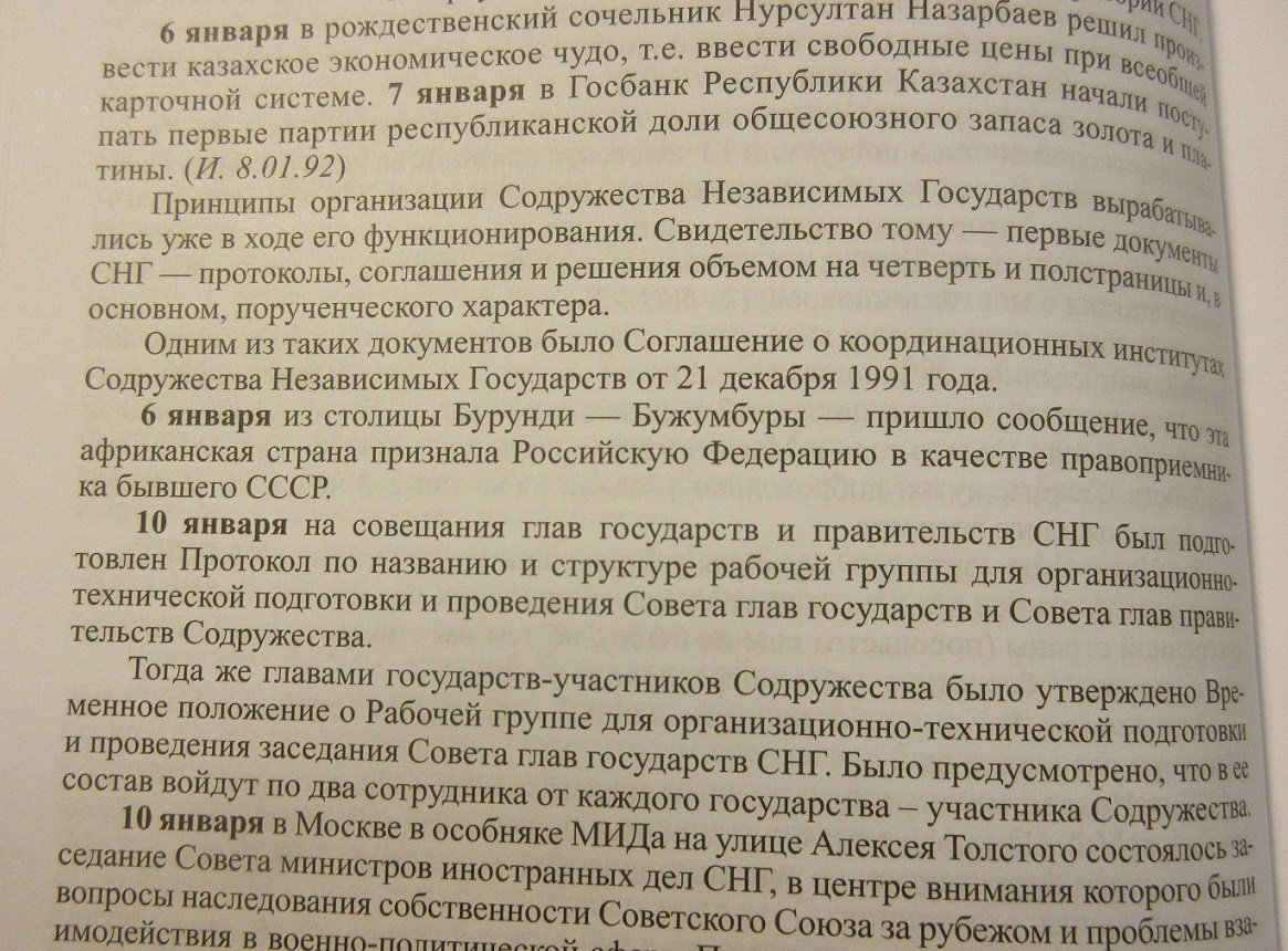 Это труд двух авторов – российского историка банков и финансовой системы Николая Кротова и исполнительного директора АНО «Экономическая летопись» Михаила Кротова. Ими проделана кропотливая работа по воссозданию событий почти тридцатилетней давности, многие из которых имели долгосрочные последствия и сыграли немаловажную роль в формировании нашей сегодняшней действительности. Книга содержит понедельную хронику одного лишь месяца 1992 года - января. Авторы без гнева и пристрастия сообщают читателям факты, приводят свидетельства очевидцев того бурного времени. В книге уделено заметное место только что возникшему и делавшему в те дни первые шаги Содружеству Независимых Государств.