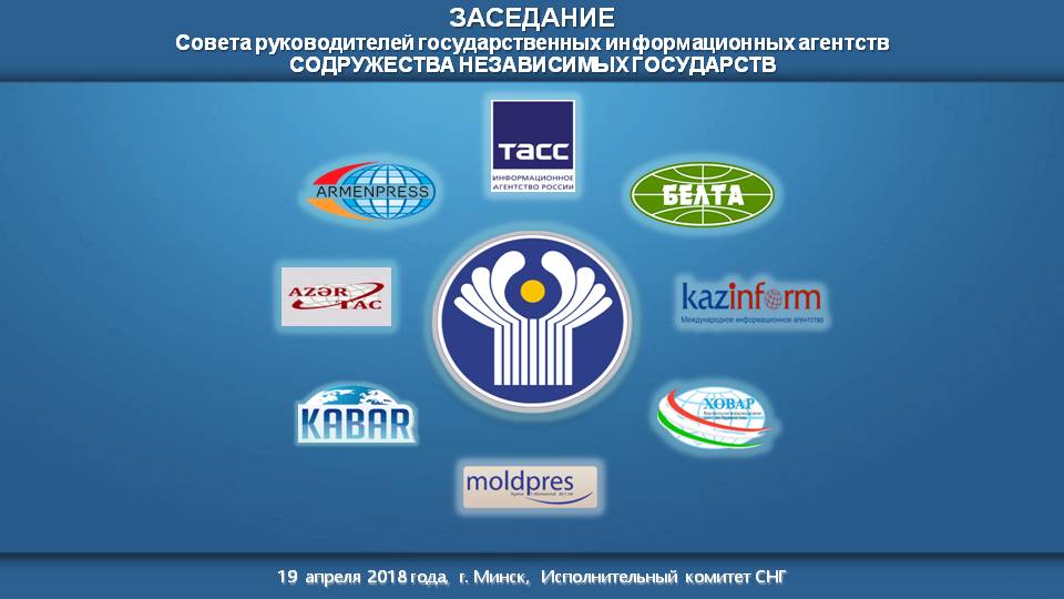 19 апреля 2018 года в Исполнительном комитете СНГ (г. Минск, ул. Кирова, 17, зал заседаний) пройдет ХХIV заседание Совета руководителей государственных информационных агентств Содружества Независимых Государств (Информсовета СНГ).