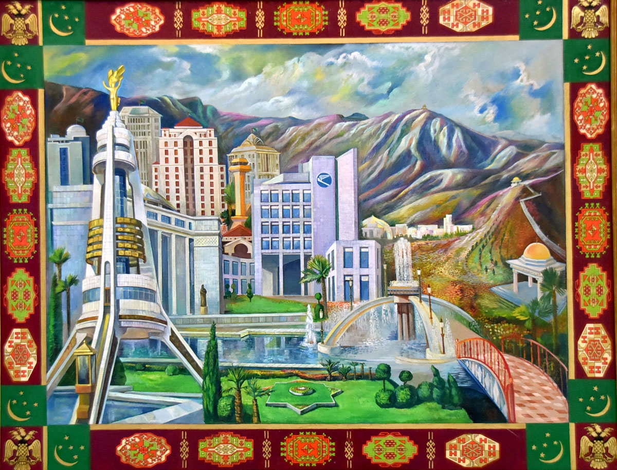 Жители со всех уголков страны и зарубежные гости приезжают, чтобы увидеть достопримечательности Ашхабада, зарядиться энергией масштабных достижений, символично воплощённых в гармоничном облике мегаполиса. Об этом картина художника А. Кичикулова «В гостях у сына», на которой изображена пожилая женщина, находящаяся под впечатлением только что увиденного. Женщина отдыхает, сидя у открытого окна, за которым – панорама современного жилого комплекса…