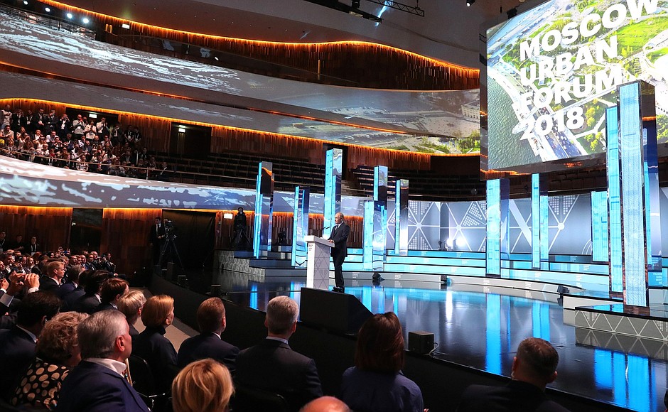 Владимир Путин выступил на VIII Московском урбанистическом форуме «Мегаполис будущего. Новое пространство для жизни», проходящем в столичном парке «Зарядье» с 17 по 22 июля.
