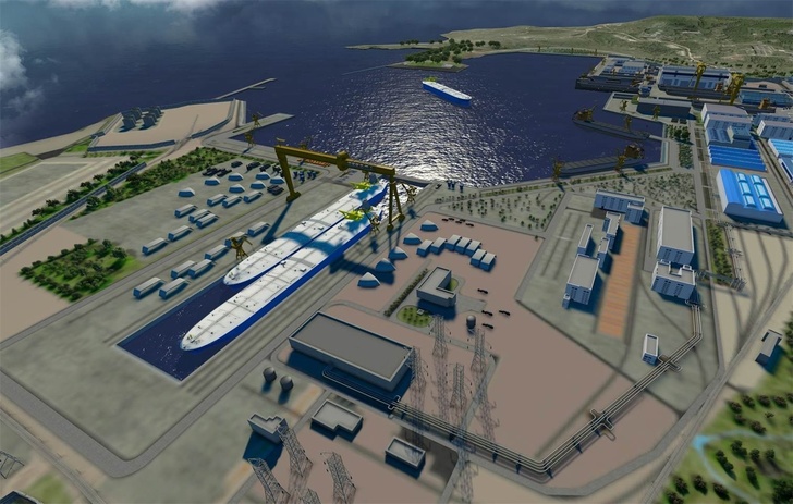 Строительство сухого дока длиной 485 метров, шириной 114 метров и высотой 14 метров началось в 2017 году, после завершения строительства он станет одним из крупнейших сухих доков мира.