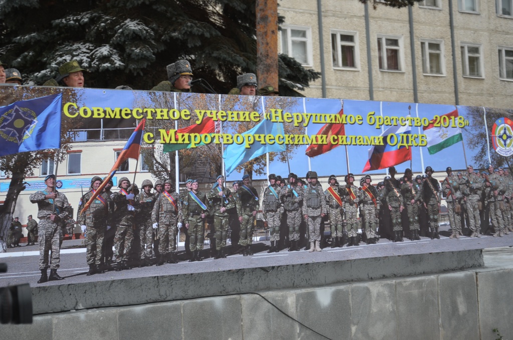 30 октября в Российской Федерации в Свердловской области началось совместное учение «Нерушимое братство-2018» с Миротворческими силами Организации Договора о коллективной безопасности. Церемония открытия состоялось на территории 32-го военного городка. В ней приняли участие заместитель Генерального секретаря ОДКБ Петр Тихоновский, начальник Объединенного штаба ОДКБ генерал-полковник Анатолий Сидоров. Руководит учением заместитель Командующего войсками Центрального военного округа генерал-лейтенант Юрий Петров
