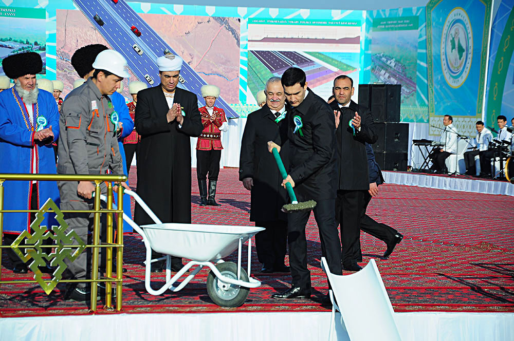 В рамках торжества были организованы красочные выставки произведений народного декоративно-прикладного искусства, выступления бахши, эстрадных солистов и танцевальных коллективов. Всё это придало церемонии яркий колорит и праздничное настроение собравшимся. А после того, как была произведена символическая закладка фундамента будущей автотрассы, ознаменовавшая начало строительства первого участка высокоскоростного шоссе, присутствующим был показан видеоролик.