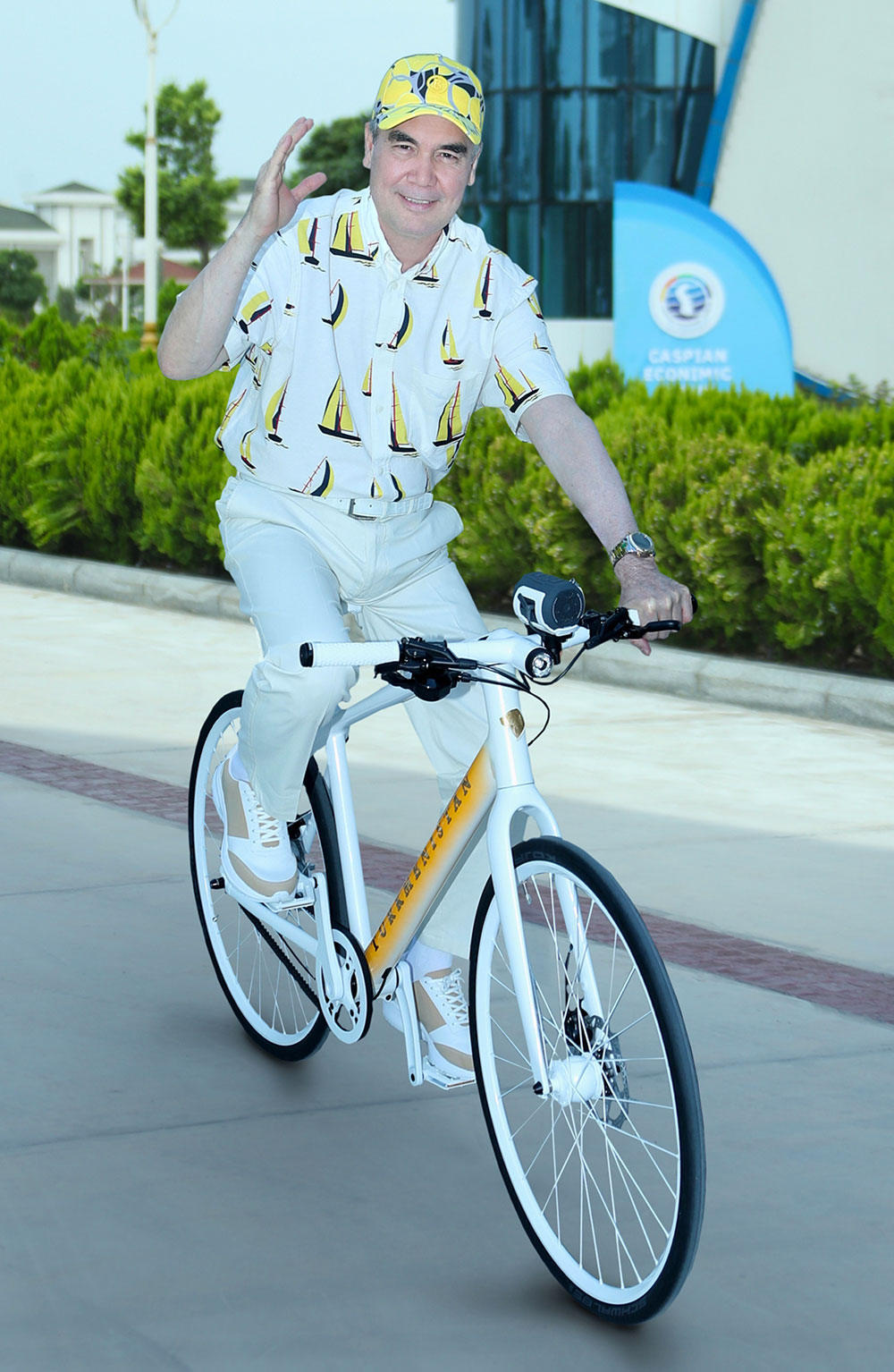 Прибыв на территорию отеля «Watançy», глава Туркменистана оставил свой велосипед на действующей здесь «Эковелосипедной станции».