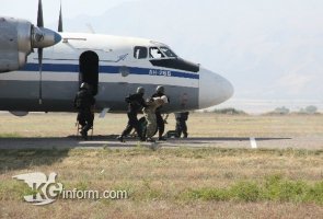 Успешно была проведена и операция по освобождению пассажиров самолета Ан-26 на аэродроме базы «Кант». Под прикрытием топливозаправщика группа захвата приблизилась к лайнеру и проникла внутрь через кабину летчиков. Чтобы отвлечь внимание боевиков, использовались светошумовые гранаты и другие специальные средства, одновременно по выявленным террористам произвели залп снайперские расчеты.
