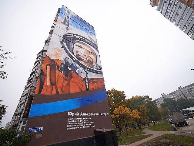 В Харькове появилось самое большое граффити во всей Украине. Оно изображает первого космонавта мира Юрия Гагарина. Высота грандиозного рисунка составила 35,25 метра, ширина 12,81 метра, а общая площадь – 451,55 квадратных метра. На стене дома изображен не только портрет самого космонавта в скафандре, но и космос, небо, корабль «Восток-1». На создание изображение ушло почти пятьсот баллончиков с краской более сорока оттенков. Четверо художников работали над портретом с начала октября. Специально для тех, кто ничего не знает о первом человеке в космосе, они написали пару строк. Кроме того, они указали, что Гагарин является почетным гражданином сразу нескольких городов страны.