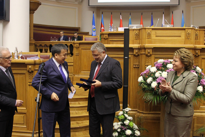 Церемония вручения прошла на заседании МПА СНГ в Думском зале Таврического дворца. Премию и денежное вознаграждение вручили председатель Совета МПА СНГ Валентина Матвиенко и председатель Жогорку Кенеша Кыргызской Республики Асилбек Жээнбеков.