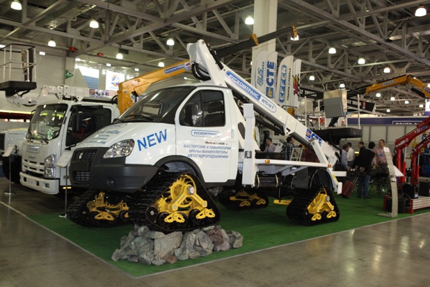 Уникальный проект от автомобильного завода «РУСКОМТРАНС», автовышка, высотой подъема до 14 метров на отечественном шасси «Соболь», оборудованный гусеничными треками. Полный привод обеспечивает прохождение сложных участков, проще говоря проект для проведения работ в условиях полного отсутствия дорог.